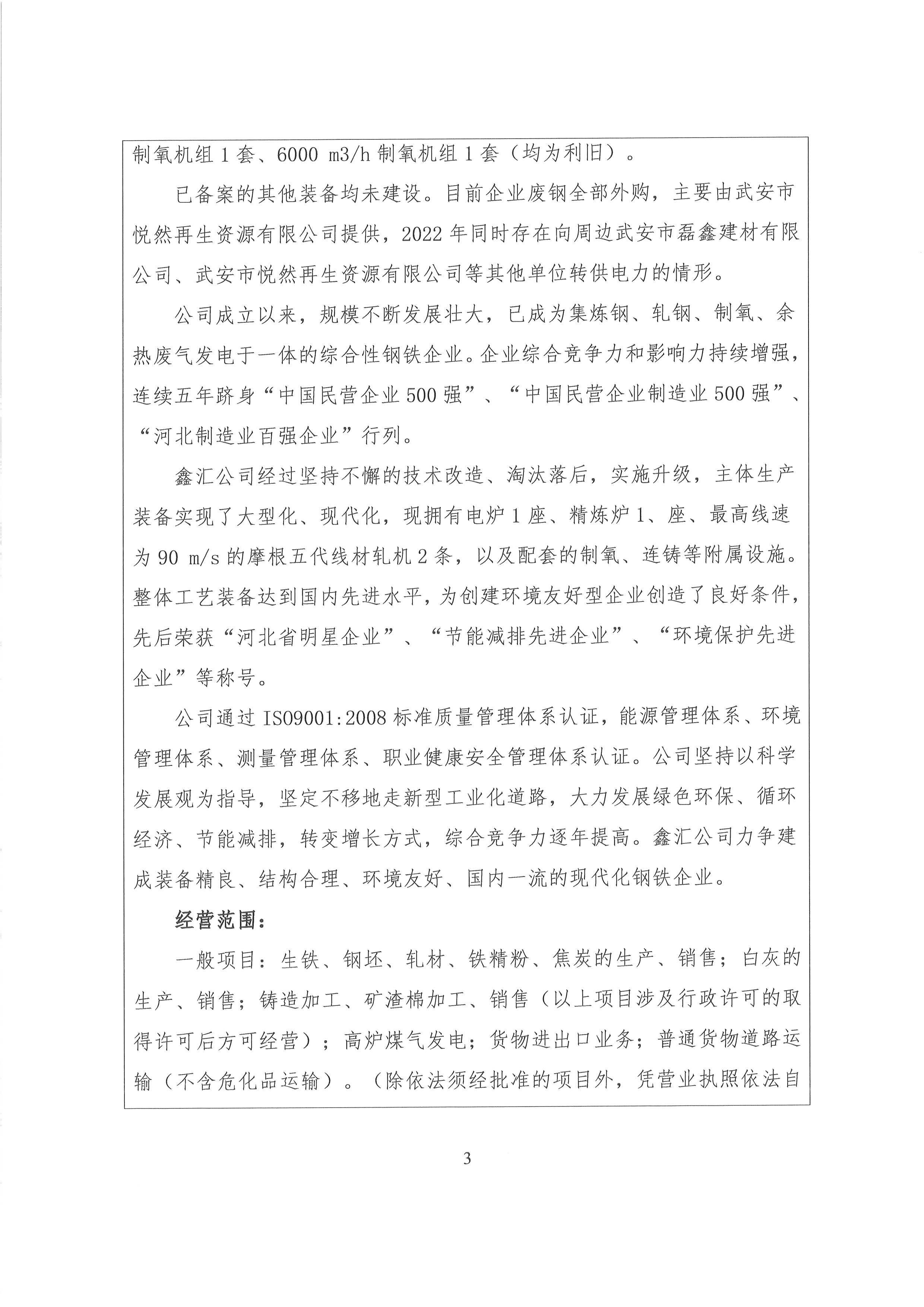 2023年河北新武安鋼鐵集團鑫匯冶金有限公司碳排放報告